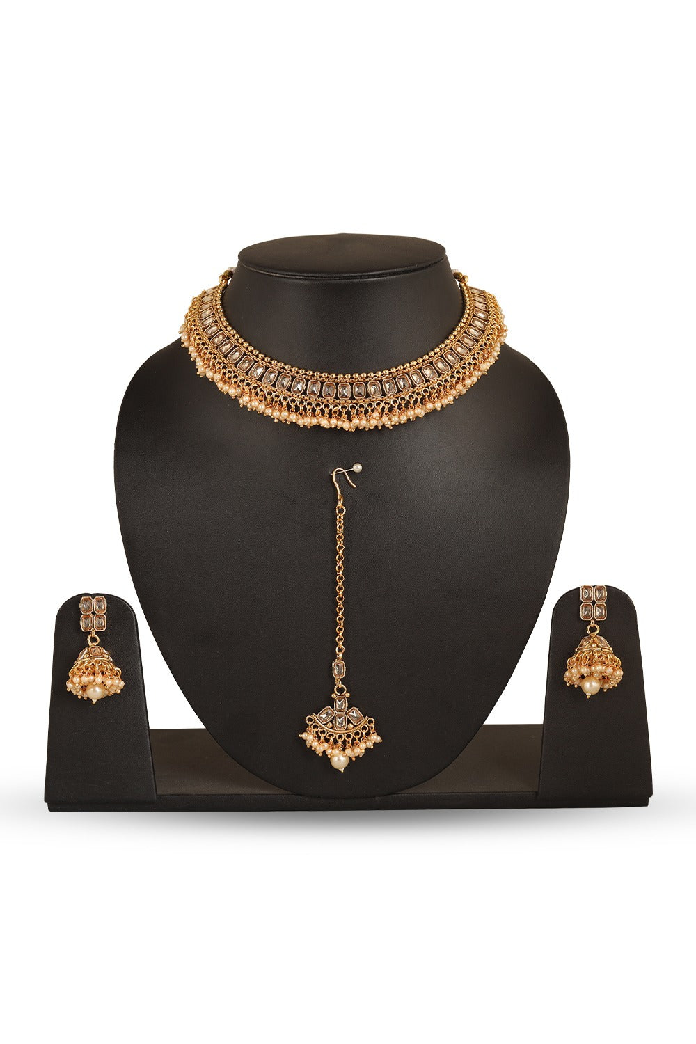 Kundan Choker with Beaded Tikka & Cluster Jhumkas